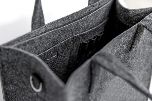 HOLM ist für diejenigen, die klassischen Stil, Komfort und recyceltes Material schätzen. Strapazierfähiger Filz und handgefertigte Produktion machen diese Tasche zu Ihrem langjährigen Begleiter im Alltag. Perfekt für Menschen mit einem schnellen Lebensrhythmus, bietet sie viel Platz für all Ihre Essentials. Das Innenfach enthält eine separate Tasche für den Laptop, einen Schlüsselring, einen Flaschenhalter, drei Stiftlöcher und eine Handytasche. Perfekt für den Bürogebrauch und Spinde.