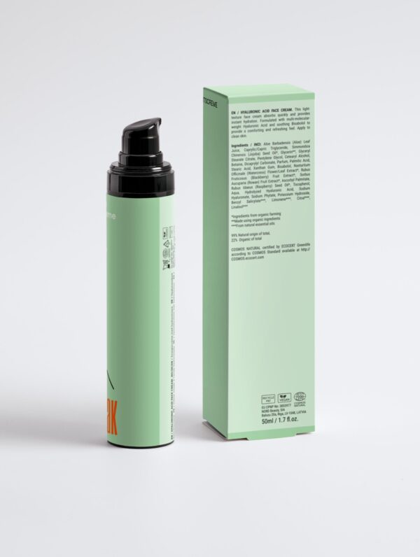 Produktbeschreibung: Diese Feuchtigkeitscreme hat eine samtig-leichte Textur, zieht schnell ein und spendet sofort Feuchtigkeit. Die Formel mit Hyaluronsäure unterschiedlicher Molekulargewichte und einer Mischung aus wirksamen natürlichen Inhaltsstoffen schützt und pflegt die Haut. Beruhigendes Bisabolol hilft, die Haut nach der Rasur zu beruhigen. Auf die gereinigte Haut auftragen.