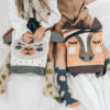 Oberteil: Samtstoff mit MUNI bemaltem und bedrucktem „Schaf“-Design.