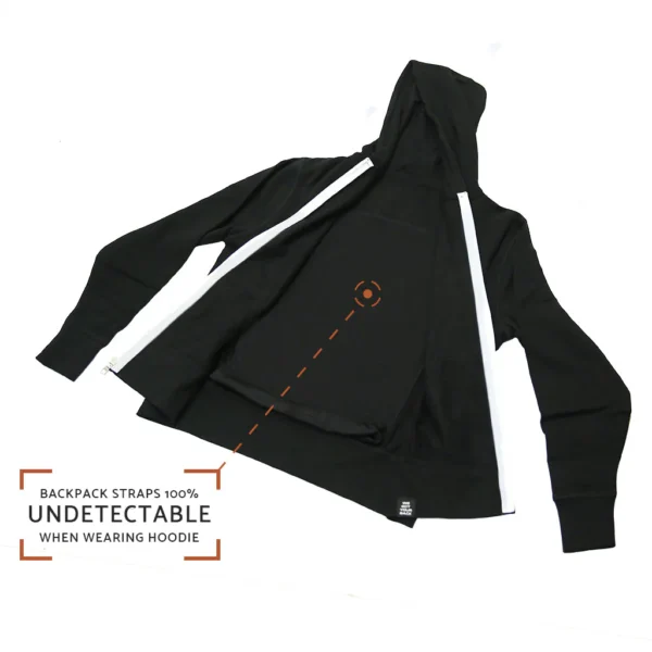 - Leichtes/atmungsaktives Rucksackfutter macht die Träger im Kapuzenpulli unauffindbar