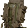 Er verfügt über zwei abnehmbare Seitentaschen, die sich in einen Rucksack mit kleinerem Fassungsvermögen verwandeln lassen. An der Unterseite der Tasche befindet sich ein Reißverschlussfach zur Aufbewahrung von Schuhen. Die mit Baumwollgewebe überzogene Rückseite des Rucksacks ist mit Polsterungen ausgestattet, die eine bessere Belüftung zwischen dem Rücken des Trägers und dem Rucksack gewährleisten. Er verfügt über gepolsterte Schultergurte und einen Hüftgurt. Die Vorderseite hat MOLLE-Gurte zum Anbringen zusätzlicher Ausrüstung. An der Unterseite der Tasche sind Schlaufen zur Befestigung von Ausrüstung (wie z.B. einer Isomatte) angebracht. Außerdem befindet sich eine Reißverschlusstasche an der Klappe, die die Tasche verschließt.