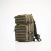 Unser militärgrüner, taktischer Rucksack 063 ist Teil der Galvi-Linda Patrouillenrucksack-Serie, hergestellt aus Cordura, einem äußerst strapazierfähigen Material, das oft bei der Herstellung von Arbeits- und Militärkleidung verwendet wird. Cordura wird auch von Adidas bei der Herstellung einiger ihrer haltbarsten Schuhmodelle eingesetzt. Der Rucksack verfügt über zwei unabhängige große Fächer und zwei kleine unabhängige Fächer im vorderen Bereich der Tasche. Die großen Fächer lassen sich vollständig öffnen, was das Packen besonders bequem macht, wenn Sie mehr Gegenstände in die Tasche passen müssen. Dieser Rucksack hat ein Fassungsvermögen von 35 Litern und nimmt Gegenstände effektiv auf.